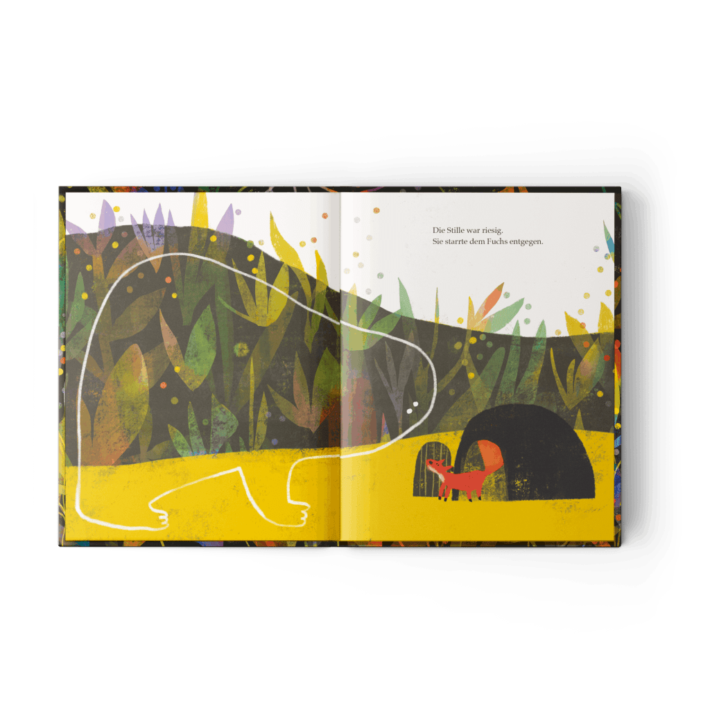 Der kleine Fuchs ist zum ersten Mal allein zu Hause. Draußen wird es dunkel und plötzlich klopft es an der Tür. «Ich bin die Stille», sagt eine geheimnisvolle Stimme. Darf sie hinein? Was erst unheimlich klingt, wird zu einer warmen, überraschenden Begegnung. Der kleine Fuchs lernt, dass in der Stille vieles steckt: Gedanken, Mut – und vielleicht sogar eine neue Freundin.